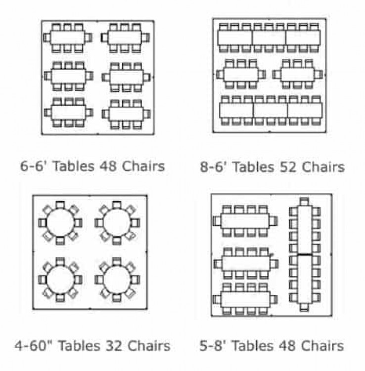 You can fit up to 48 guests comfortably under a 20 x 20 tent. With the 6-foot rectangular tables, you can fit 6 tables under this size tent. Each table fits 8 guests comfortably and will fit a total of 96 guests.