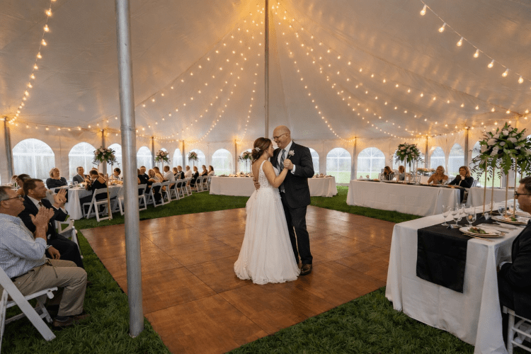 - 40' Wide Tents: This floor is designed to maximize space in standard 40-foot wide wedding tents.