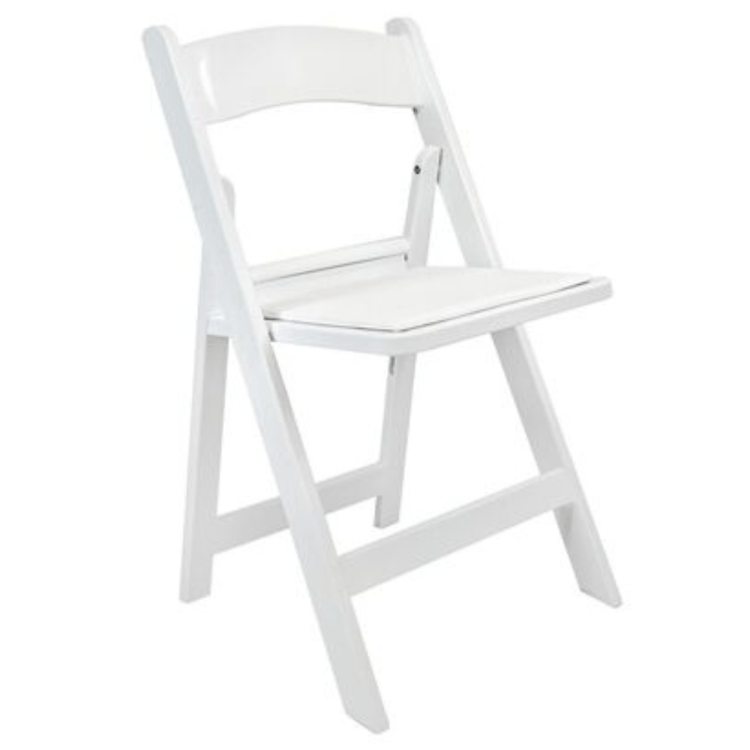 - Style: White Resin Frame with Padded Seat.